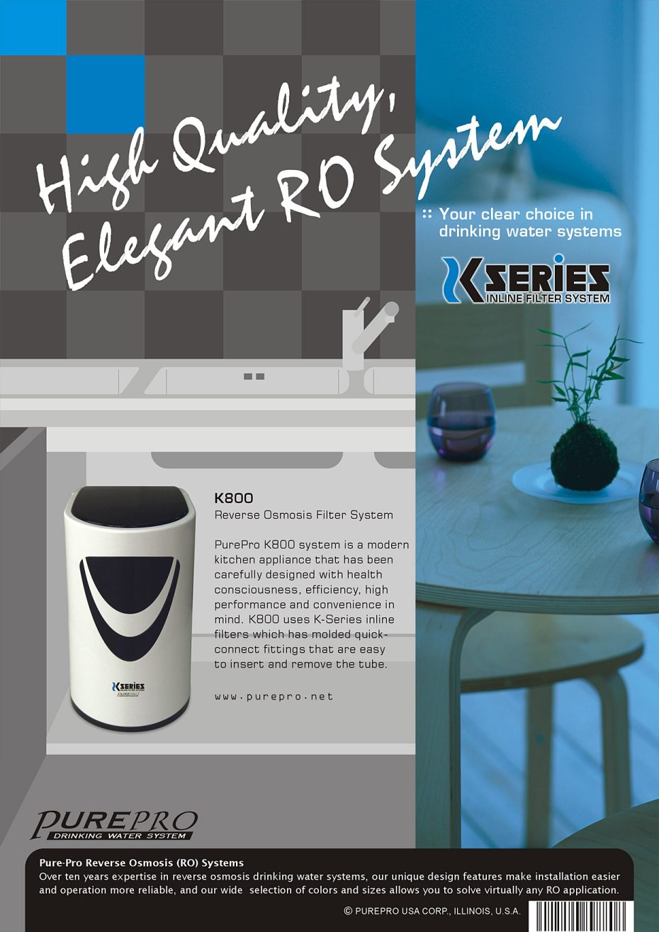 O’pure K800 system uses reverse osmosis (RO) technology – which is recognized as the most effective at significantly reducing a large number of contaminants that may be in your water – no other home water treatment system offers you as much protection and reliability.